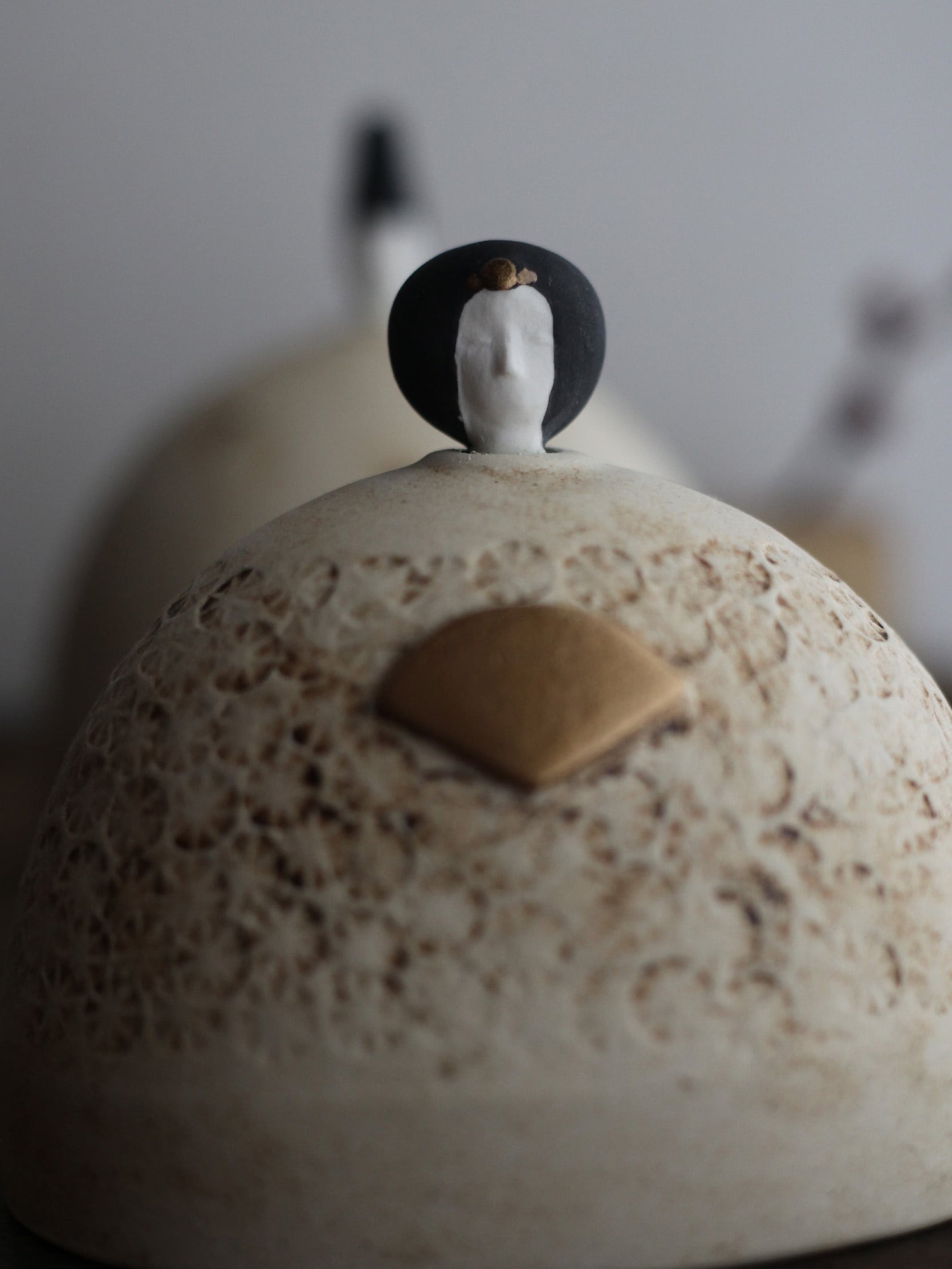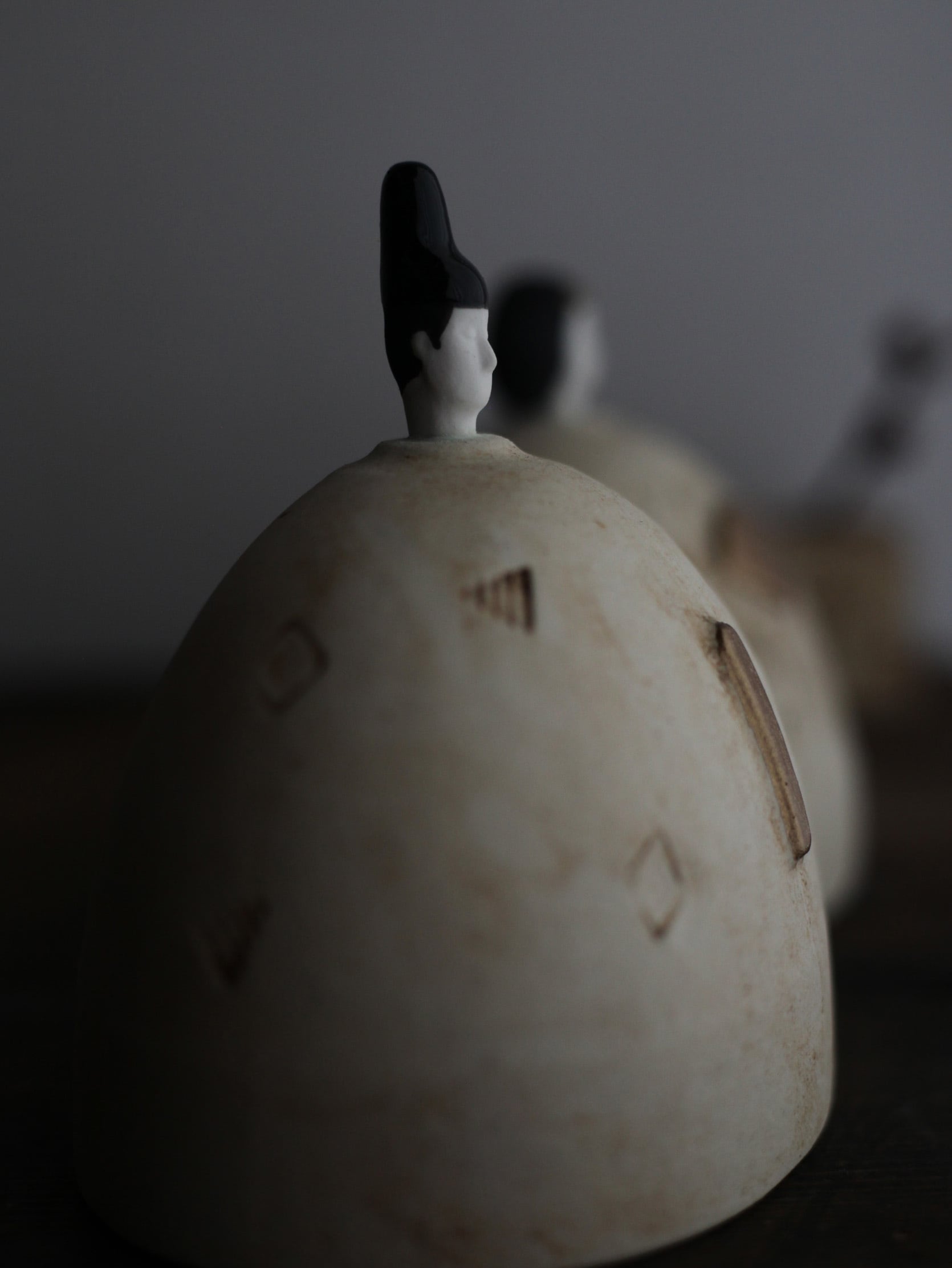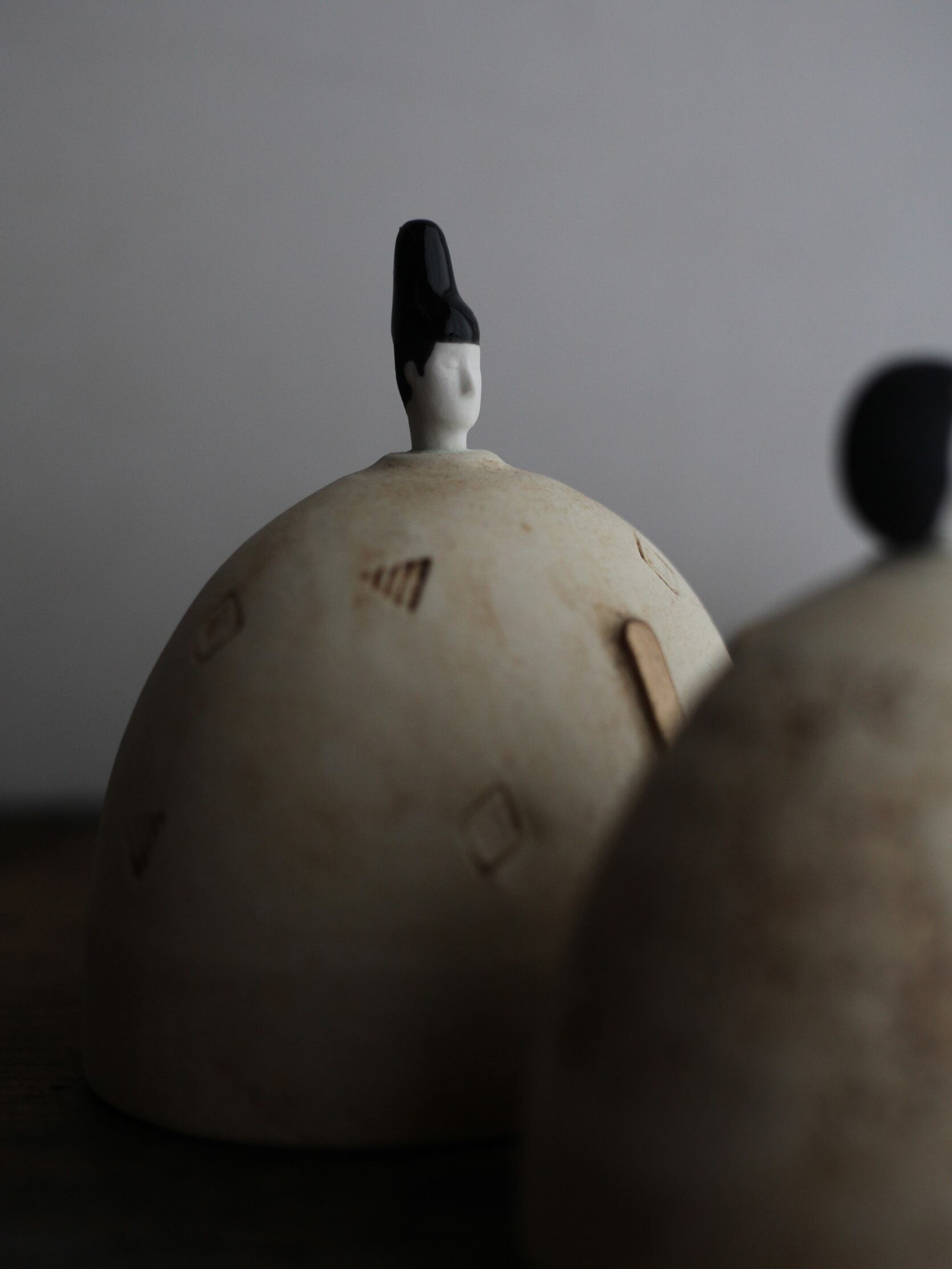 岡野香さんが一点一点手作業で制作するこの陶器の雛飾りは、毎年の変化を感じる特別な作品です。作家自身の成長と共に、その年ならではの個性が宿るため、まさに世界でたった一つしかないお雛様です。