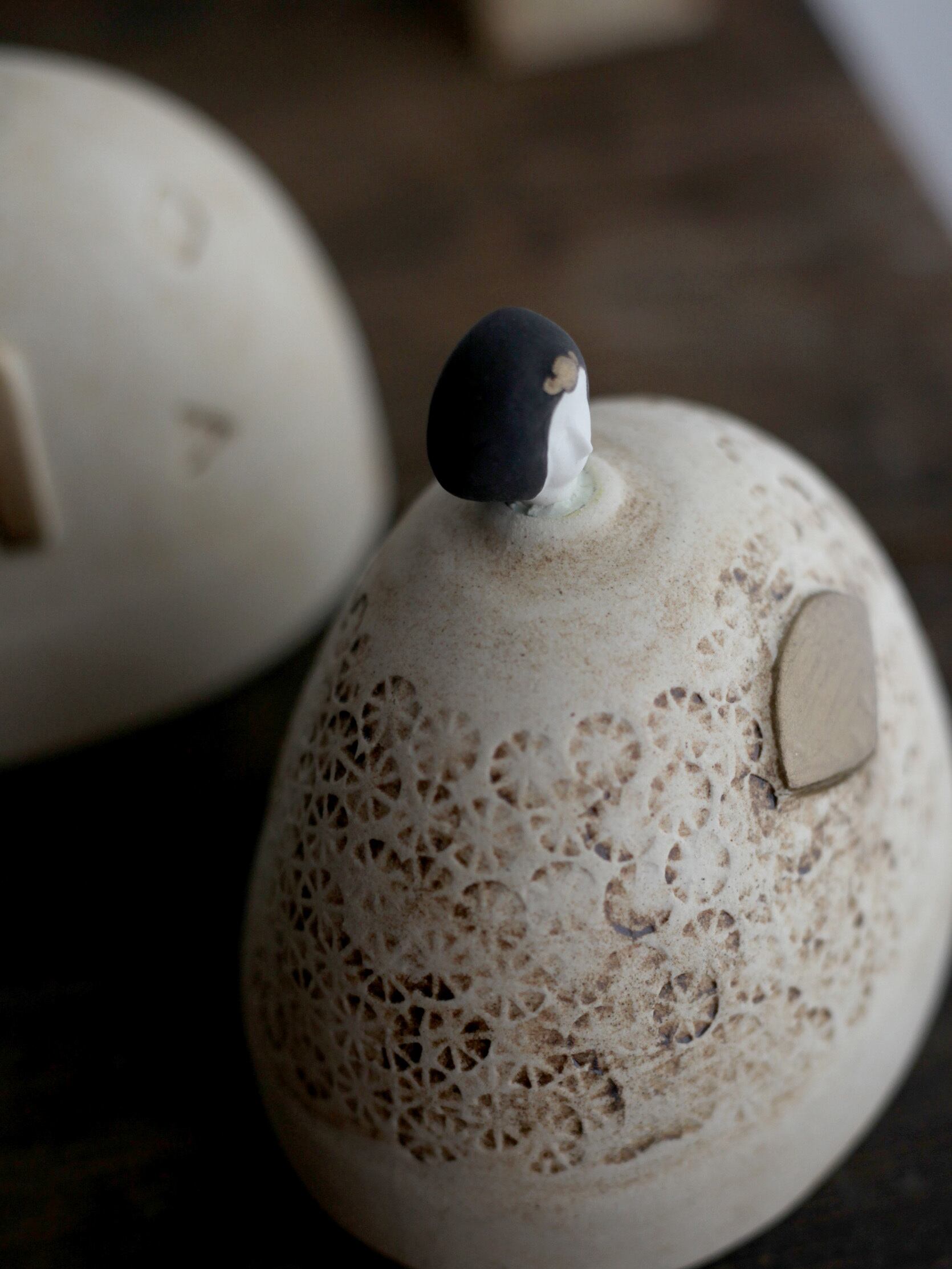 岡野香さんが一点一点手作業で制作するこの陶器の雛飾りは、毎年の変化を感じる特別な作品です。作家自身の成長と共に、その年ならではの個性が宿るため、まさに世界でたった一つしかないお雛様です。
